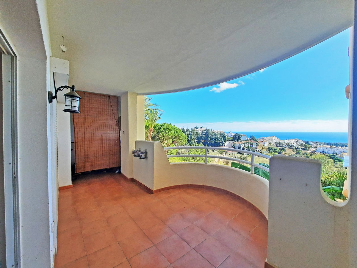 Estupendo apartamento orientado al sureste con preciosas vistas abiertas al mar en la parte alta de Calahonda. El apartamento dispone de un bonito y acogedor salón_comedor con chimenea que da a una terraza cubierta con fantásticas vistas. La cocina tiene buen tamaño y está totalmente equipada y semi abierta al comedor con lavadero independiente. El dormitorio principal tiene persiana eléctrica y baño privado con bañera y hay un segundo baño reformado con ducha para el otro dormitorio y también accesible para visitas. El apartamento tiene el aire acondicionado instalado con contador individual y pagadero a la comunidad cada semestre. La comunidad ofrece una piscina muy grande ideal para nadadores y con sol todo el día, una zona de ocio comunitaria junto a un estanque donde relajarse e intercambiar libros con los vecinos...Hay 2 zonas comunitarias de aparcamiento cerrado para residentes además de plazas extra afuera de la Urbanización reservada para residentes. Varios bares y restaurantes se encuentran justo detrás de la Urbanización, cruzando la calle. Al lado de la Urbanización puedes caminar hasta una parada de autobús que te llevará al centro comercial de Fuengirola, a un bonito parque infantil y a un gran parque para perros donde podrás llevar a tu mascota a correr si tienes una. Puedes estar en la playa de Calahonda en 5 minutos en coche.
