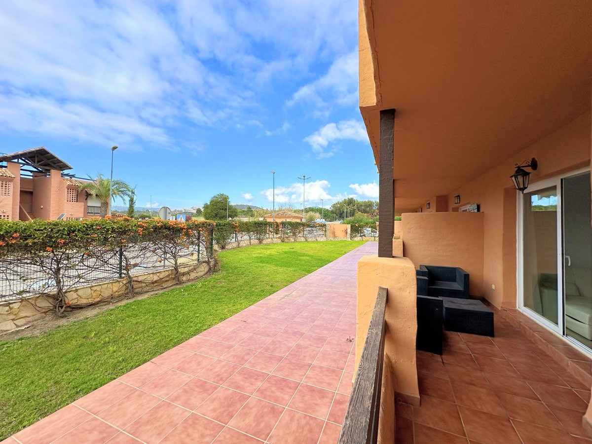 PRECIOSO APARTAMENTO EN PRIMERA PLANTA CON BONITAS VISTAS AL MAR, LOS JARDINES Y A LA PISCINA. Ubicado en Casares Costa, zona actualmente en desarrollo, con reconocidos campos de golf como Finca Cortesin y Doña Julia. Lujosas urbanizaciones y en construcción uno de los hoteles que será de los más importantes en el área de la cadena Hilton. Ubicado entre el atractivo puerto deportivo de Estepona y el de La Duquesa, ambos a 4 min conduciendo, lugares que ofrecen, una gran variedad de restaurantes, chiringuitos y zonas de ocio, así como maravillosas playas de arena y un agradable paseo marítimo que conecta toda la costa del sol. Esta vivienda se encuentra en perfecto estado para entrar a vivir, distribuida en una planta, con 2 amplias habitaciones y 2 baños reformados. Es salon conecta a través de los ventanales con su acogedora terraza, donde podrá disfrutar hermosos atardeceres. Una propiedad con gran luminosidad gracias a su ORIENTACIÓN SUR. Dentro de una urbanización cerrada, desde donde podrás ir andando a la playa en unos 12 min por un sendero habilitado. El complejo ofrece 6 piscinas comunitarias, una de ellas abierta durante todo el año, amplias y cuidadas zonas verdes con maravillosos jardines tropicales. Seguridad 12h con conserje. Aire acondicionado frío_caliente. Incluye plaza de aparcamiento subterráneo para coche grande y trastero. Es realmente una GRAN OPORTUNIDAD de inversión como vivienda habitual o para para alquiler, tanto de larga como de corta temporada. Recomendamos su visita