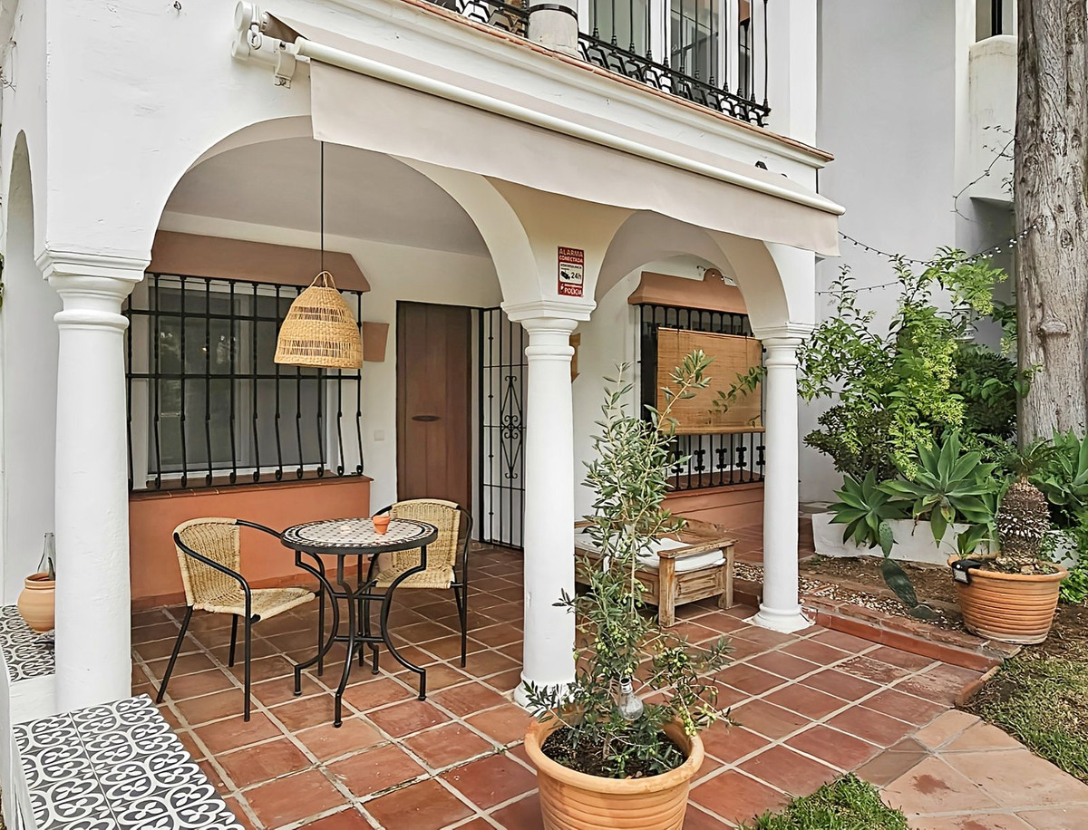 Aparttament situated in El Paraíso Pueblo Andaluz style urbanization in gated complex, residential with a special charm of Mediterranean air, quiet, private, with spacious and well maintained common areas and close to all the services of the commercial gallery of El Paraíso Schools, supermarkets, tennis club, golf courses, transport services.Just five minutes from San Pedro de Alcántara, Puerto Banús and its beaches. Well connected with the N_340, a bucolic place ideal for people who want to live close to everything they need in a relaxed and intimate atmosphere.Ground floor aparttament, with main orientation East, with a constructed area of 85m2 and 80m2 usable area. Partially refurbished plumbing, electricity, windows, bathroom and kitchen have been updated by the current owners.It is distributed inSemi_covered main terrace with small storage room annex, entrance hall, living_dining room with fireplace, kitchen with back patio, master bedroom with en_suite bathroom, secondary bedroom both with fitted wardrobes and second full bathroom.The parking area is outside, covered, gated and attached to the entrance of the urbanisation.A property to take into account as an investment to be rented there is a high demand for rentals in the area both in L and CT, thanks to its location and characteristics.