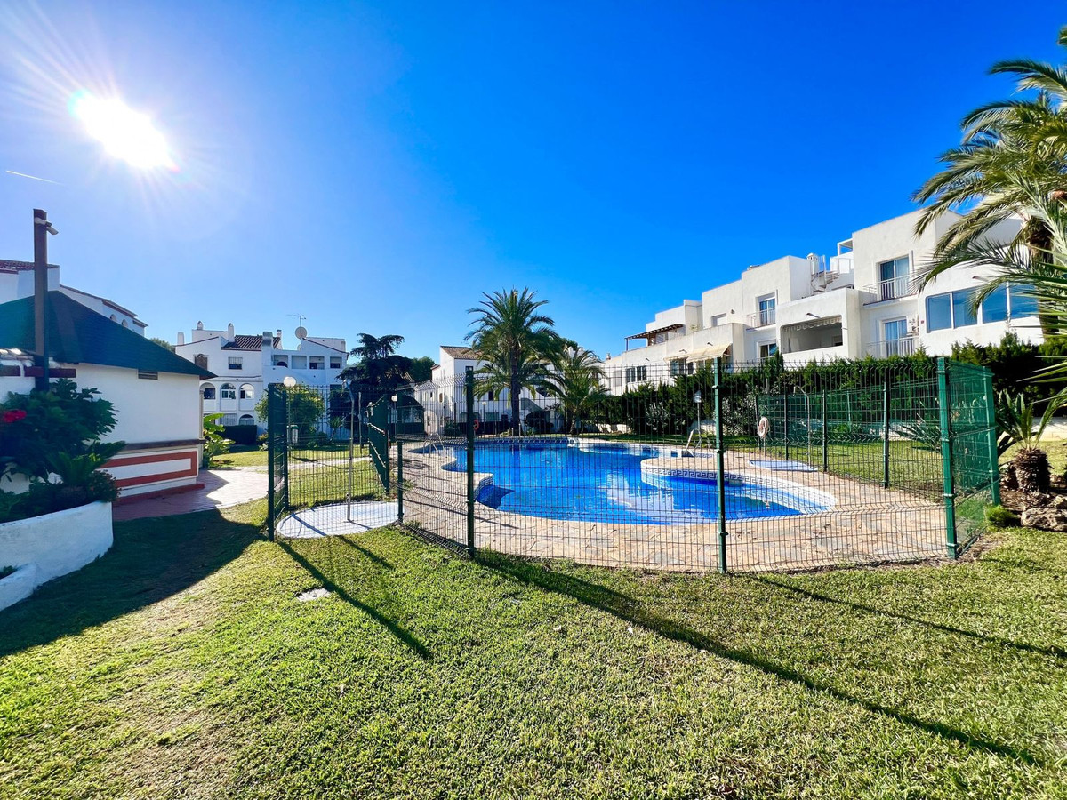 Apartamento en planta baja con salida directa en piscinaSe vende un precioso piso reformado totalmente de 2 dormitorios, 2 baños uno con ducha, otro con bañera y bidé, amplio salón, cocina independiente.El piso está rodeado de bares, cafeterías, restaurantes, pizzerías, pubs, gimnasio We are fit, club de tenis Rozarossa, tiendas, una farmacia Paraiso, dos supermercados, peluquerías, carnicerías, lavandería, un banco, dos tiendas de golf, agencias inmobiliarias, asesorías, una notaria, un parque infantil dentro de una cafetería Los Arcos. También hay una parada de autobús y de taxi. La playa está a 12 minutos andando cruzando el puente peatonal. El lugar es simplemente perfecto. La carretera está a 2 minutos y tiene buena conexión con Marbella Puerto Banus a 10 minutos en coche. Como el propietario es carpintero todo el mueble de la casa está hecho a medida y cada rincón está aprovechado.Todo el piso tiene doble suelo de madera y es suelo radiante que se regula por zonas, un mando para cada sector de la casa para el ahorro razonable. El aire acondicionado está centralizado por toda la casa y el aparato es nuevo.El dormitorio 1 tiene armario empotrado con puertas correderas, dos armarios y una cómoda montados en la pared a medida.El dormitorio 2 tiene un armario empotrado con puertas correderas, escritorio y muebles a medida.La cocina tiene el mueble a medida por todo el perímetro y tiene todos los electrodomésticos.El salón es amplio y tiene todo el mueble a medida y un armario_cama. También un escritorio en la zona de despacho con su mueble y paredes forradas de paneles.Como todo esta elaborado a medida se queda en el piso, excepto dos camas y el escritorio del niño.Todas las puertas y ventanas están cambiadas. La puerta principal es doble una es metálica segura y la de exterior es de madera.El piso está en la planta baja con un patio, su mesa y sillas y los toldos. Tiene puerta metálica que da al precioso jardín y la piscina de la urbanización. Hay parking exterior.