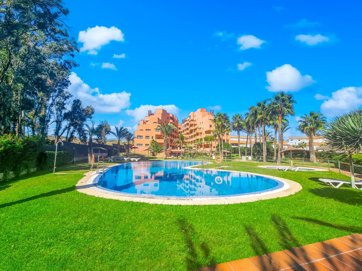 APARTAMENTO OFICIALMENTE DESIGNADO COMO APARTOTEL TURÍSTICO.Precioso apartamento de 1 dormitorio en primera línea de playa con vistas al mar en La Duquesa.El salón disfruta de preciosas vistas al mar y tiene acceso directo a la terraza de buen tamaño desde donde se puede disfrutar de impresionantes vistas al mar, la montaña y el jardín.La cocina es de estilo semiabierto, totalmente equipada y con sobres de granito.El dormitorio tiene armarios empotrados y baño en suite con bañera.El residencial está cerrado y disfruta de hermosos jardines comunitarios, piscinas y área de juegos para niños.Legalmente está designado como apartamento turístico con un uso máximo de 60 días al año aunque actualmente no hay operador turístico.