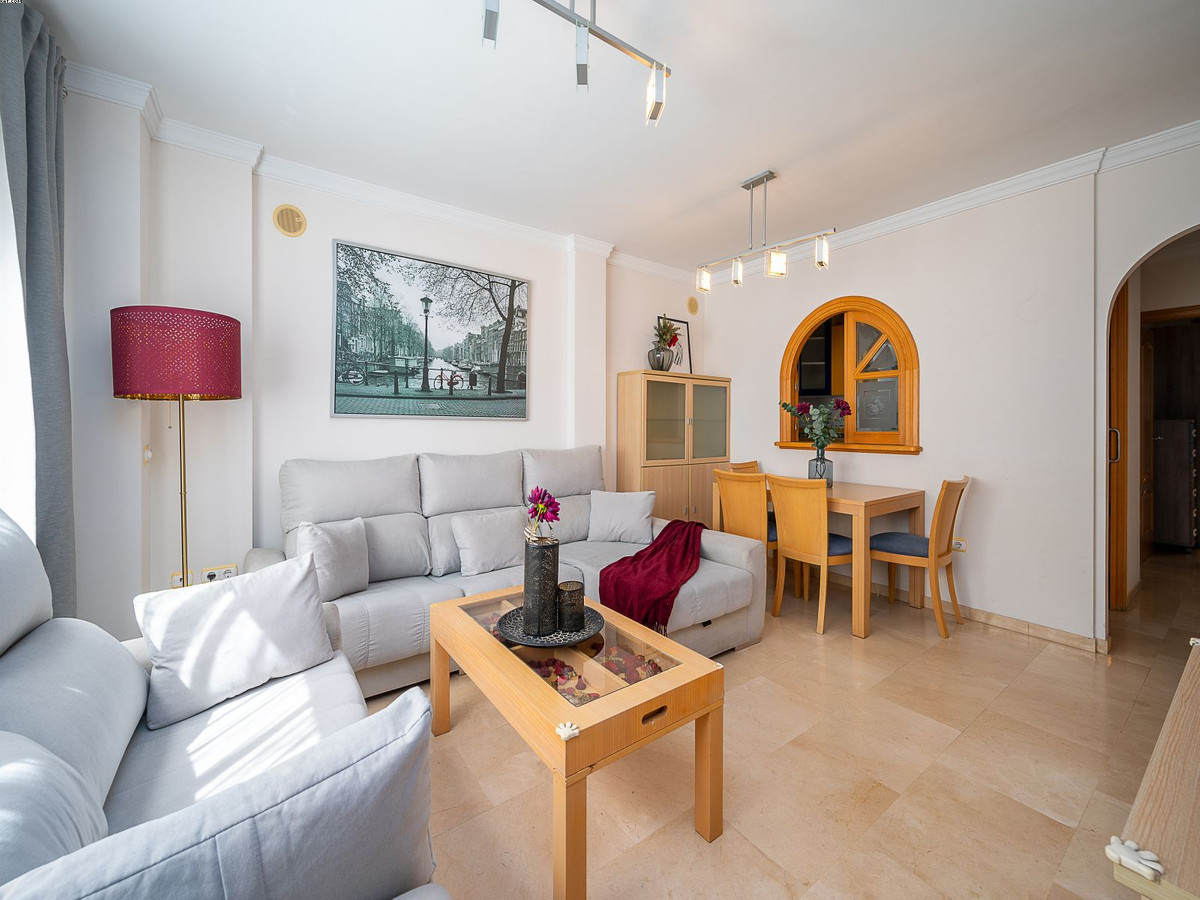 Apartamento en primera planta situado en Las Lagunas, Mijas Costa. A un paso de colegios y comercios esta vivienda ofrece un acogedor y luminoso salon comedor, cocina equipada, dos dormitorios, baño completo y un patio interior en el que se ha puesto un armario exterior con la lavadora, secadora y almacenamiento. La vivienda tiene aire acondicionado instalado, suelos de marmol e instalacion de hilo musical. El edificio tiene ascensor . Perfecta vivienda para tener todo cerca de casa.