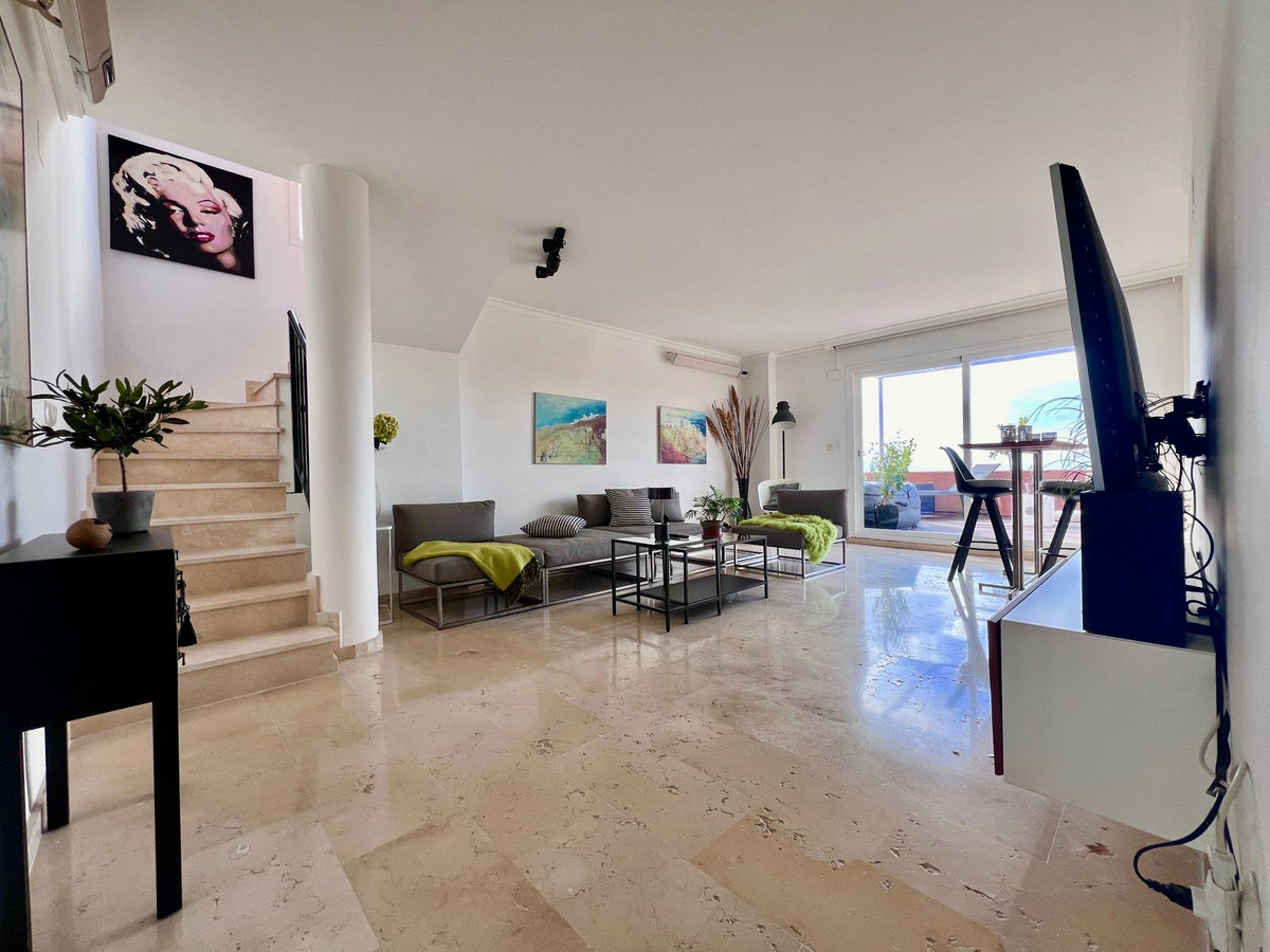 UNDER OFFER This is an exceptional penthouse apartment for sale in East Marbella, located in Elviria the property over looks Santa Maria Golf course and along the coast. This penthouse apartment is a duplex on two levels with three terrace areas allowing one to really enjoy outdoor living. The complex is gated with a communal pool and gardens and included in the price is a private garage space. Store room optional extra.
