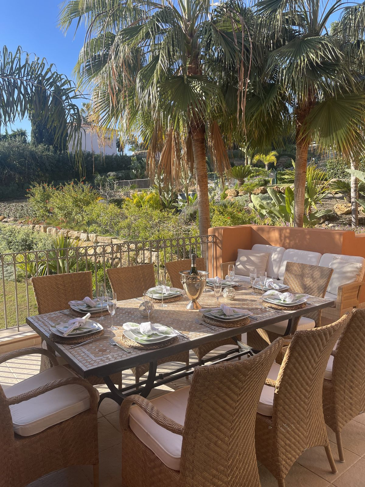 Apartamento de lujo y espacioso de 3 dormitorios en el piso intermedio en el corazón del Valle del Golf La Cerquilla _ Nueva Andalucía _ Marbella, una hermosa urbanización cerrada con seguridad las 24 horas mediante cámaras de circuito cerrado, jardines paisajísticos y 3 piscinas. El apartamento cuenta con una amplia terraza privada de 60 metros cuadrados, con áreas cubiertas y al aire libre, que ofrece vistas directas a los jardines cuidados de la urbanización.El apartamento, orientado al sur, se distribuye en un vestíbulo de entrada, amplio salón_comedor con acceso directo a una soleada terraza con vistas al jardín y la piscina, cocina totalmente equipada con área de lavandería adyacente, 3 dormitorios, 2 baños, distribuidor, dormitorio principal con baño en suite y acceso directo a la terraza y los jardines. Suelos de mármol, calefacción por suelo radiante en los baños, aire acondicionado frío_calor con controles de termostato independientes, sistema de alarma y fibra óptica_internet.El precio incluye una plaza de garaje subterráneo y un trastero.