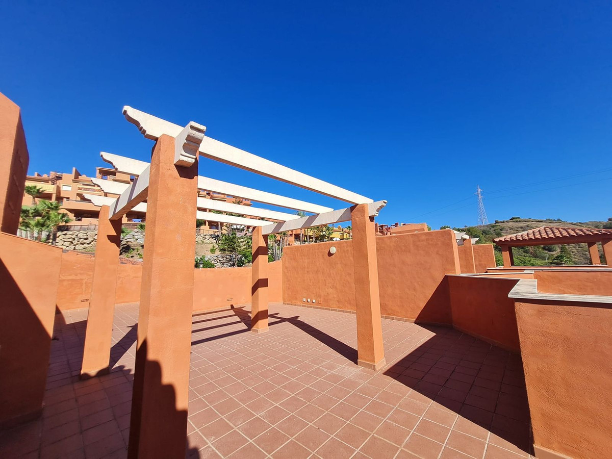 Situado dentro de un complejo residencial grande con zonas ajardinadas cuidadas y varias piscinas, a pocos minutos de las famosas playas que rodean el Puerto de Cabopino encontramos este amplio ático dúplex, listo para entrar a vivir. La vivienda se encuentra en muy buen estado, tiene un gran salón con acceso a una primera terraza con vistas abiertas al campo y orientada al este, una cocina totalmente equipada que se podría abrir fácilmente al salón y 2 dormitorios con armarios empotrados y aire acondicionado centralizado independiente. La principal tiene un baño en suite y hay otro bonito baño de invitados. Desde la terraza se accede por una escalera de caracol al enorme solárium donde todas las opciones son posibles jacuzzi, cocina de verano, otro dormitorio etc... La vivienda se vende con una buena plaza de garaje subterránea y un trastero grande. En el exterior encontramos una piscina preciosa rodeada de jardines con jacuzzi. La Reserva de Marbella goza de amplias avenidas, su arquitectura de corte mediterráneo en el que el volumen, color y forma de los edificios se han diseñado en armonía con el entorno natural. Sus amplias zonas verdes y ajardinadas por donde fluyen ríos que surten bellos estanques hacen de sus instalaciones acuáticas el relax, la diversión y el deporte. Sus numerosos servicios, entre los que destaca su alto grado de seguridad 24 horas al día, dotan a la Reserva de todo cuanto se pueda desear para vivir a gusto.