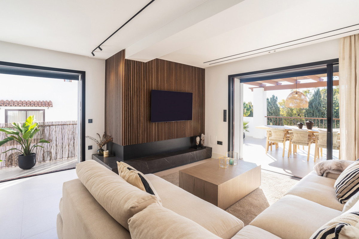 Moderno apartamento dúplex orientado al suroeste situado a pocos minutos en coche del conocido Puente Romano, con impresionantes vistas. Este apartamento luminoso y con buena distribución cuenta con dos niveles. En la primera planta tiene una zona de estar de planta abierta con cocina Siemens y Bosch de alta calidad y una terraza perfecta para ver la bonita puesta de sol, más un dormitorio de invitados y aseo de invitados. En la segunda planta hay un gran dormitorio principal con vestidor y terraza privada. Tiene un segundo dormitorio espacioso con armarios empotrados y baño separado. Extras calefacción por suelo radiante agua y aire acondicionado Daikin Altherma airzone en todoa la vivienda, persianas y calidades Hans_Grohe _ Geberit _ Roca y Xlight Porcelanosa en los baños.El apartamento está idealmente situado en la Milla de Oro, en una comunidad cerrada con jardines perfectamente mantenidos y piscina comunitaria. Incluye dos plazas de aparcamiento.