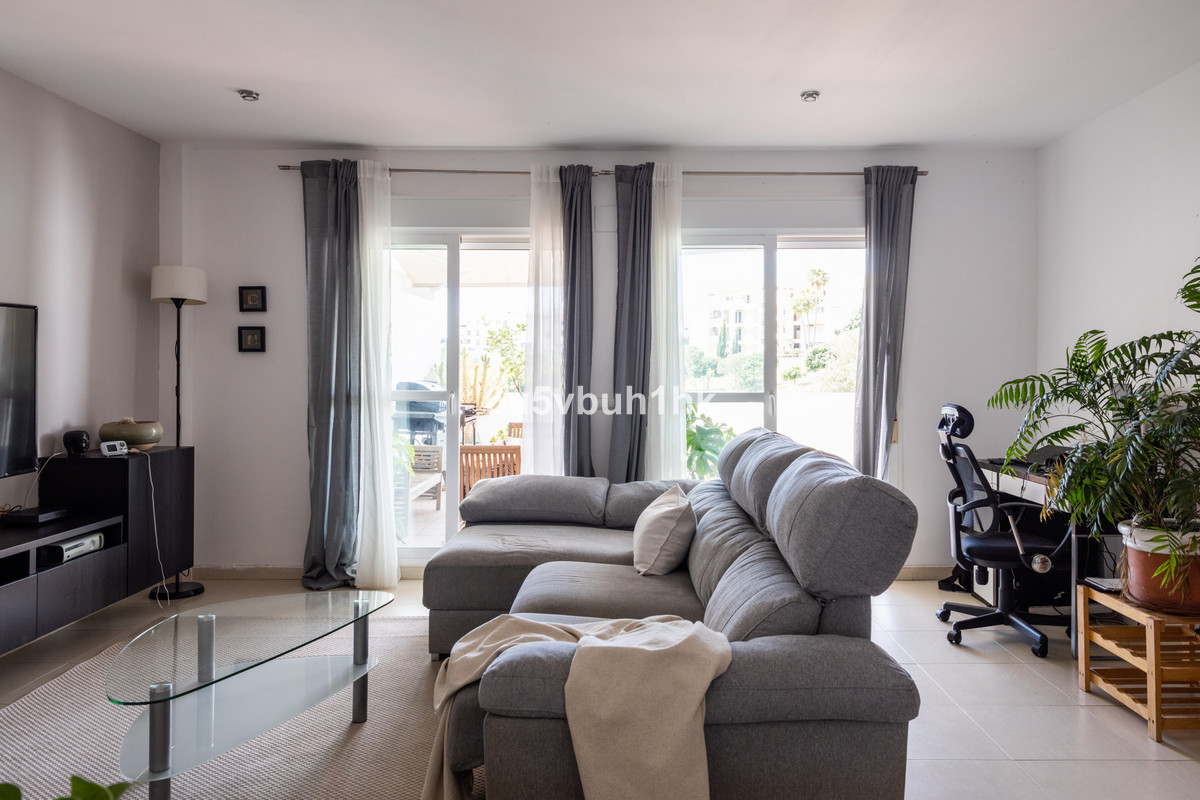 El luminoso apartamento tiene un excelente plano de planta sin desperdiciar metros cuadrados. La espaciosa cocina está totalmente equipada y hay mucho espacio en el mostrador y acceso a la terraza. El salón es muy luminoso, entrando la luz a través de dos puertas de cristal, desde las que se accede a la terraza. La gran terraza tiene hermosas vistas en parte al mar y tiene espacio para muebles de exterior más grandes y una barbacoa. Los dos dormitorios son espaciosos y hay mucho espacio de almacenamiento. Uno de ellos es con baño. Ambos dormitorios tienen puertas de vidrio que conducen al gran balcón con vistas a la montaña. Además, también hay una habitación que se puede utilizar, por ejemplo, como vestidor o espacio de oficina. La comunidad cerrada ofrece un ambiente cómodo para vivir y hacer actividades. Hay una piscina y hermosas zonas ajardinadas. Se encuentra junto al campo de golf de Miraflores y está cerca de servicios integrales y restaurantes. Está a sólo 2 km de la playa y el aeropuerto está a 20 minutos. También hay plaza de garaje y trastero incluidos. Una calurosa bienvenida a visitar. También nos complace reservar un tiempo de presentación de video.
