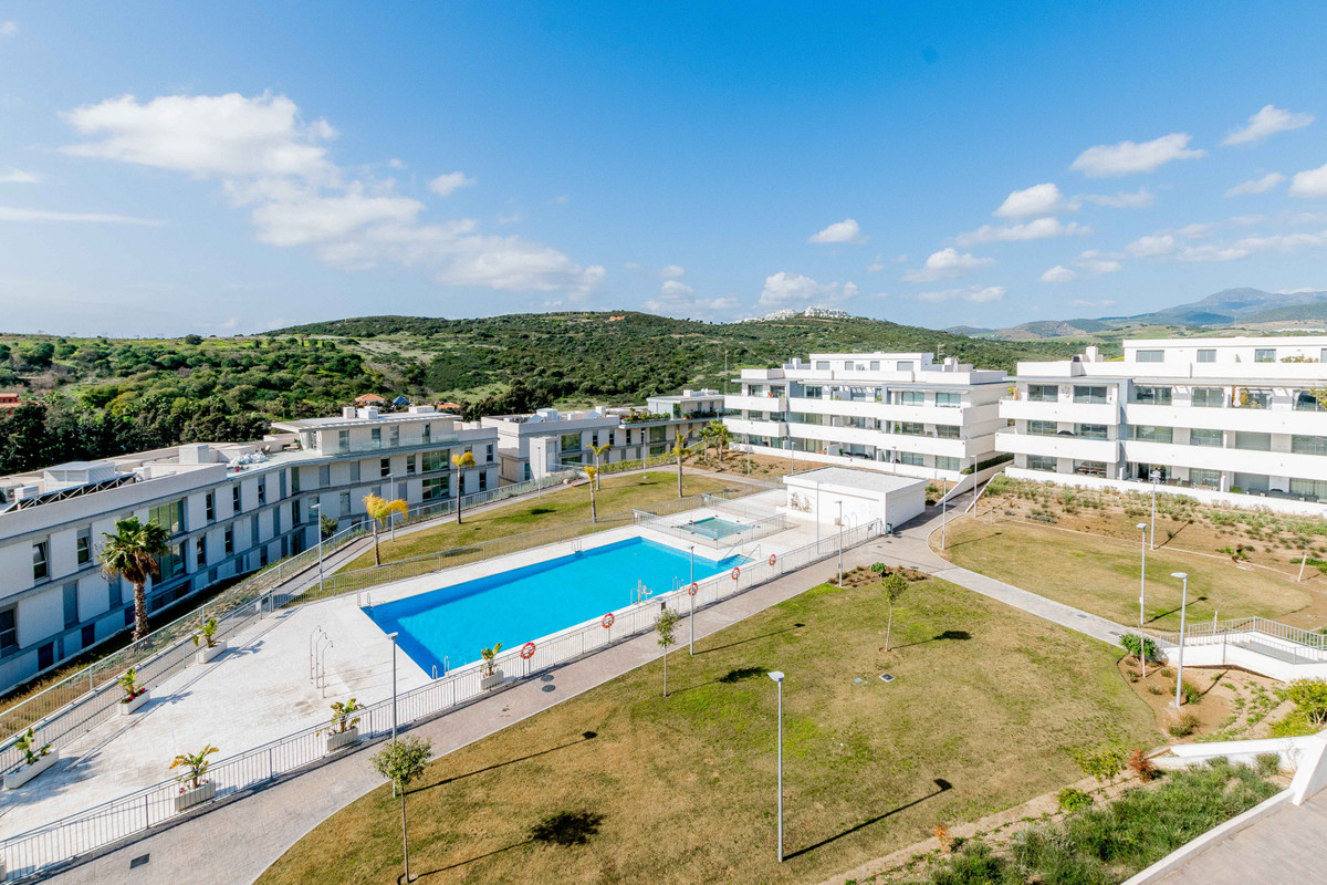 Excelente ático dúplex con vistas panorámicas al mar, ubicado en una moderna urbanización junto a Bahía Dorada, a pocos metros de la playa. El apartamentos cuenta con dos dormitorios y dos baños, uno de ellos en suite, en la planta principal. Desde el salón y la cocina, unidos en un mismo espacio, hay acceso a una gran terraza principal con espacio para descansar o comer con los invitados. En el lado opuesto, en uno de los dormitorios además hay otra terraza que ofrece vistas a la zona de la piscina. Subiendo al siguiente nivel, llegaremos al tercer dormitorio, con baño en suite, el cual está totalmente rodeado por un enorme solarium desde el que se podrá disfrutar del sol a cualquier hora del día, del jacuzzi y las vistas al mar. Se vende con plaza de garaje y trastero. Contacte con nuestra oficina de Estepona para reservar su visita.