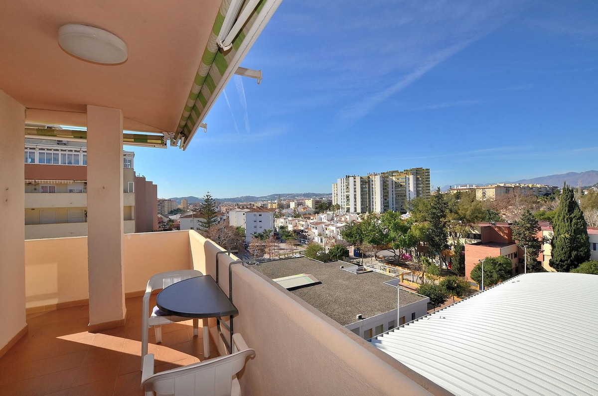 LEER DESCRIPCIÓNFantástico piso DE ESQUINA en ÚLTIMA PLANTA con BONITAS VISTAS ubicado en la conocida plaza de la Hispanidad Fuengirola. Ubicación ideal, a un paso de todo tipo de comercios y servicios.NOTA Originalmente era un piso de 3 dormitorios 2 cuartos de baño. Actualmente es un gran piso de 2 dormitorios 1 cuarto de baño, con opción de volver a la distribución original.Dispone de una AMPLIA TERRAZA, de 25 m2, con vistas parciales al mar y preciosas vistas a las montañas.PLAZA DE APARCAMIENTO TRASTERO, incluidos en el precio.Vivienda SOLEADA y LUMINOSA.El edificio dispone de piscina comunitaria.La propiedad necesita de renovación. Dispone de suelos de mármol, aire acondicionado en salón, lavadero y armarios empotrados.La distribución es la siguienteHall de entrada, cocina lavadero, salón_comedor con acceso a terraza y dormitorio 2 con acceso a terraza. De vuelta al hall, distribuidor, cuarto de baño y dormitorio principal.Metros construidos total 134 m2. Terraza 25 m2. Planta 7 ÚLTIMA PLANTA. Gastos de comunidad 63 _mes. Gastos de IBI 604 _año. Orientación Suroeste.Año de construcción 1991.Distancias_Comercios 25 mts._Restaurantes y bares 25 mts._Colegio 75 mts._Playa 800 mts._Estación de tren 800 mts._Aeropuerto 23 km.