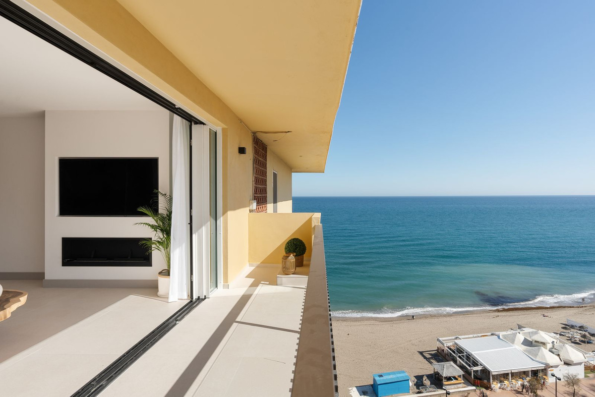Allow us to present this state_of_the_art residence in a prime location on the seafront. Discover your new oasis of luxury and comfort _ this newly renovated residence is a true masterpiece of modern design and style. With careful attention to detail and high_quality materials, each room is an inviting place to call home.Step into the bright and airy living room, where the open_plan layout and light_coloured materials create a sense of space and elegance. The modern kitchen is a dream for any food enthusiast, complete with state_of_the_art appliances, beautiful marble countertops and generous storage space.From the living room, the terrace is accessed with beautiful views of the Mediterranean, with sun from early morning to late evening, it gives the home a wonderful natural light. Once inside the home again, we find two large bedrooms with built_in wardrobes and space for a double bed. The bathroom breathes luxury and space, with well_chosen materials in Scandinavian design. With an overhead shower, double sink, you have everything you can imagine and more. In addition to the bathroom, we also find a guest toilet next door, both wet rooms are equipped with underfloor heating. This accommodation offers everything and a little more, from a quiet and beautiful beach to shops and restaurants in vibrant Fuengirola, one of Costa del Sol absolute dream destinations.This is a residence out of the ordinary that should be experienced on site. Warmly welcome home.