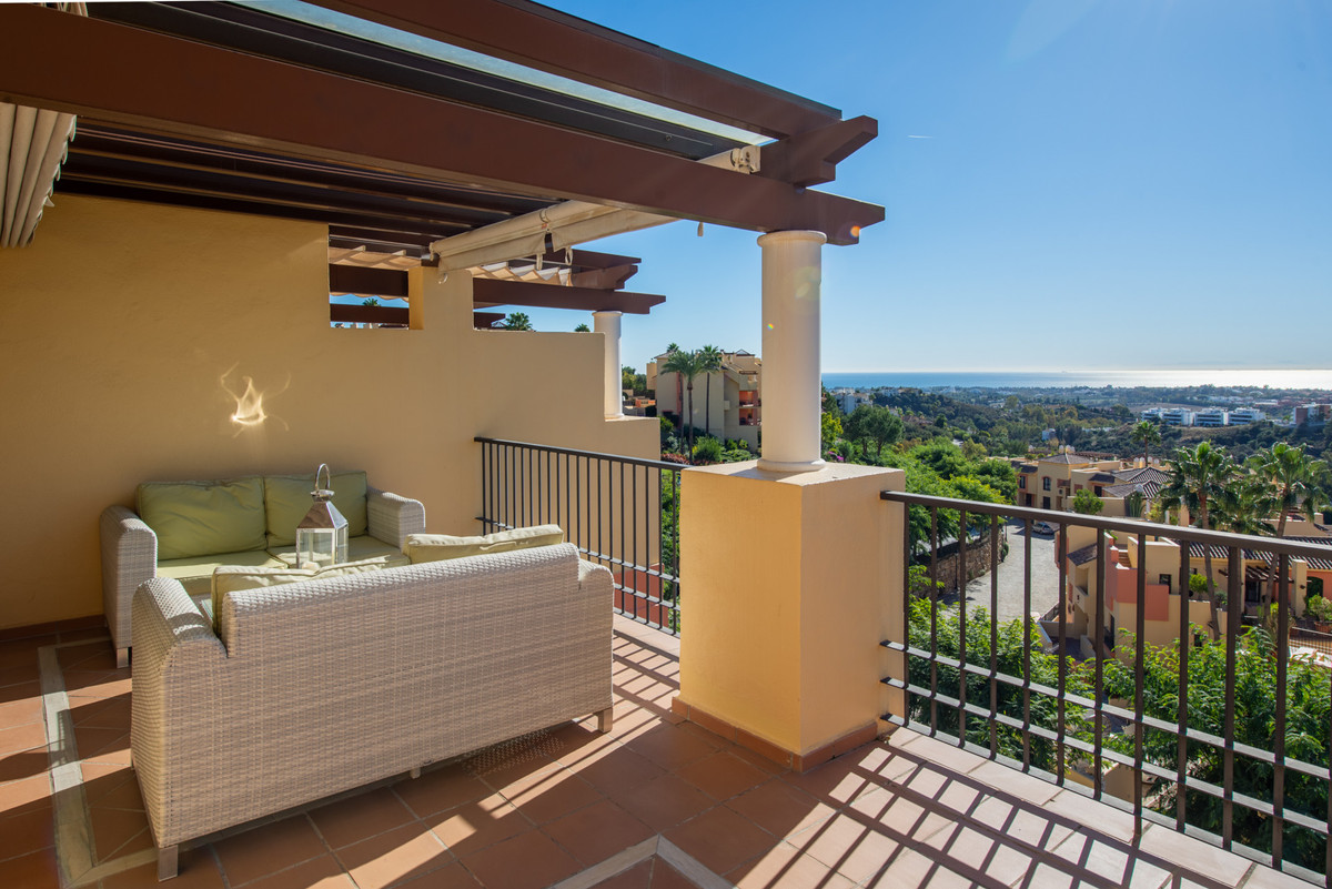 Ático perfectamente situado con increíble solarium en la azotea con vistas de 360 grados al mar, golf y montañas.Situado junto y a poca distancia de la recién renovada casa club de Los Arqueros golf, la propiedad cuenta con tres dormitorios en total, incluyendo el dormitorio principal en suite que tiene un baño en suite, así como una pequeña terraza privada. Hay dos dormitorios adicionales que comparten un cuarto de ducha familiar, que ha sido recientemente renovado por completo. Casi todas las habitaciones tienen vistas superlativas.El solarium especialmente equipado goza de algunas de las mejores vistas de la Costa del Sol, y ha sido completamente equipado con zona de bar, cocina exterior completa con barbacoa y una bañera de hidromasaje.Por supuesto, el apartamento cuenta con un amplio salón y una cocina totalmente equipada, así como una utilidad y lavadero.La propiedad es perfecta tanto para vacaciones en familia como para vivir permanentemente ya que los alquileres a corto plazo están restringidos.La Finca es una comunidad bien gestionada y bien mantenida, totalmente cerrada que cuenta con una enorme piscina, situada dentro de la urbanización Los Arqueros que cuenta con patrullas de seguridad las 24 horas y uno de los campos de golf más populares de la zona.