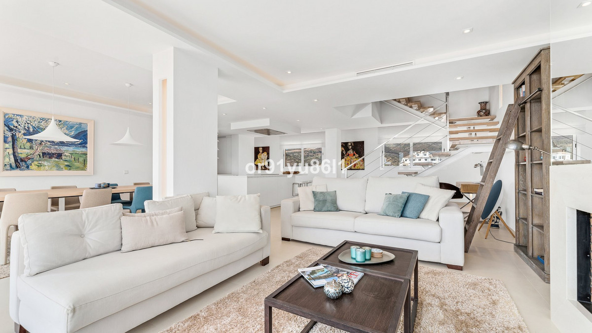Gran ático con vistas al mar y a la montaña en Aloha Hill Club, Nueva Andalucía. Construido con materiales de alto estándar y ofrece un servicio de resort de 5 estrellas, la propiedad consta de vestíbulo gran salón comedor con chimenea moderna cocina abierta lavadero aseo de invitados una gran terraza de 100 m2 con increíbles vistas al mar y a la montaña dormitorio doble en suite con acceso a la terraza principal, otro dormitorio y zona de estar. En la planta superior otros dos dormitorios en suite que da paso a una terraza con vistas al mar. La propiedad incluye un garaje y almacenamiento en el sótano. La urbanización cuenta con conserjería y servicio de seguridad las 24 horas, jardines, varias piscinas, un restaurante, bar, un spa y gimnasio, una tienda y una bodega comunitaria que acoge ocasionalmente eventos de cata de vinos. Una maravillosa propiedad a tan sólo 10 minutos en coche de Puerto Banús y la playa.