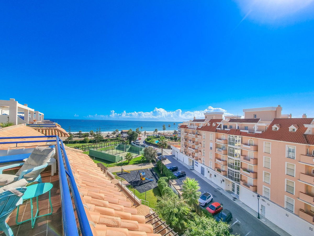 Ático Exclusivo en Primera Línea de Playa en La Noria IIIUbicado en la prestigiosa urbanización La Noria III, este espectacular ático en primera línea de playa ofrece panorámicas vistas al mar y a la montaña. Su luminosidad y diseño moderno lo convierten en una joya, listo para habitar o para ser alquilado.Características PrincipalesInteriores El apartamento, en impecable estado, cuenta con aire acondicionado de última generación, un baño completamente renovado con ducha a ras de suelo, electrodomésticos modernos y acabados en mármol. Se compone de una amplia sala de estar, un dormitorio y un baño familiar.Terraza Orientada al sur, parte de ella ha sido acristalada con lumón y techada, convirtiéndola en un espacio adicional para disfrutar durante todo el año. Está equipada con toldos para mayor comodidad.Comodidades El ático viene con un espacio de estacionamiento en un garaje subterráneo con vigilancia por video y un amplio trastero.Residencial La Noria III Este tranquilo enclave en el corazón de San Luis de Sabinillas ofrece seguridad 24_7 y acceso directo a una de las playas más hermosas de la Costa del Sol. Los residentes pueden disfrutar de 2 pistas de pádel, un campo de fútbol, piscinas y áreas de juego para niños. Los jardines, adornados con fuentes y bancos, son perfectos para relajarse bajo las palmeras.Ubicación A pesar de su proximidad al centro de la ciudad y a servicios esenciales como farmacias, tiendas y el centro de salud, la urbanización mantiene un ambiente sereno. A pocos minutos a pie, se encuentra el complejo deportivo local con instalaciones para tenis, pádel, piscina, sauna, spa y clases deportivas. Además, una variedad de restaurantes, bares y una tienda Lidl están convenientemente ubicados en las cercanías.Este ático es una combinación perfecta de lujo, comodidad y ubicación estratégica. Ideal para quienes buscan un hogar exclusivo en la Costa del Sol.