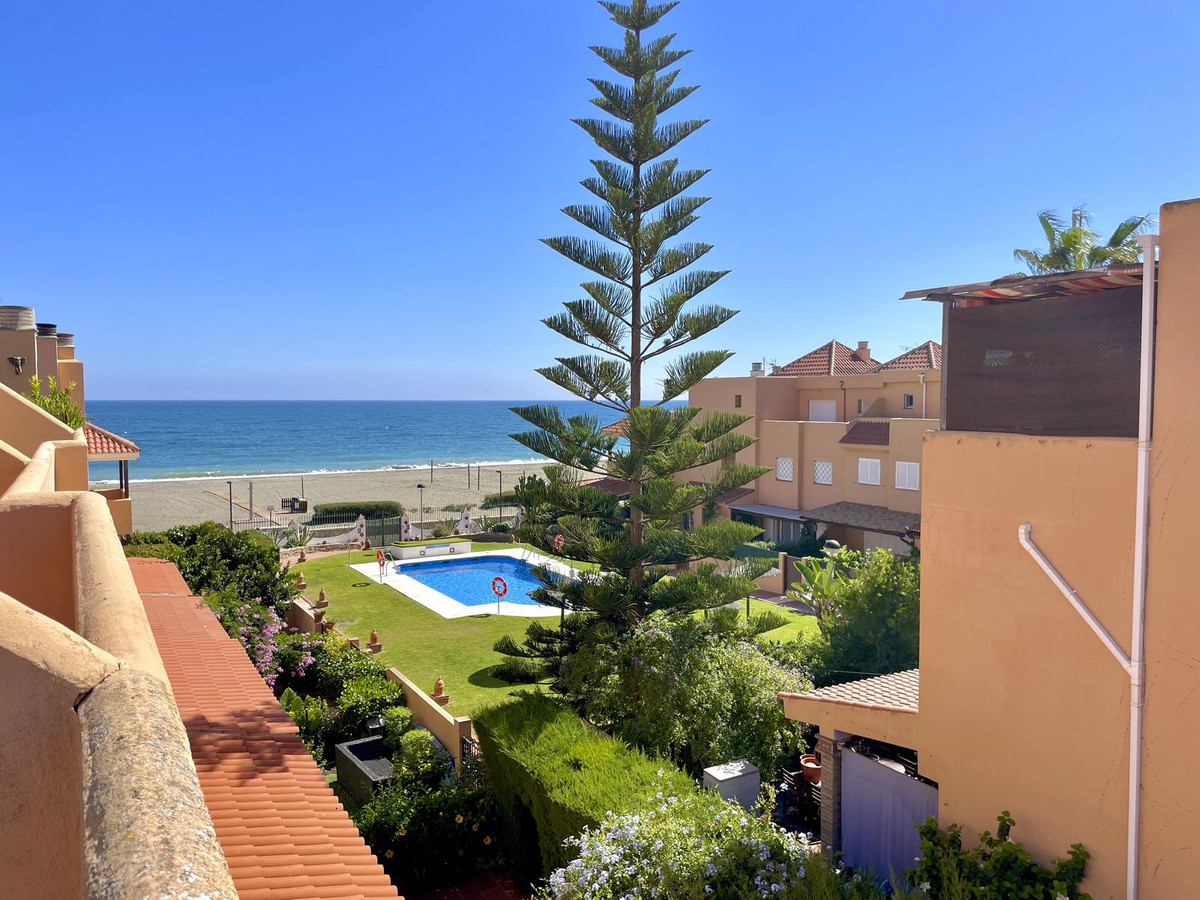 Esta casa adosada junto a la playa Marina de Casares es una excelente oportunidad situada en el codiciado complejo de Casares Costa.Esta súper ubicación está a solo 5 metros a pie de la playa de arena y los populares chiringuitos. Un corto paseo de 5 minutos por el paseo marítimo conduce al bullicioso pueblo costero de Sabinillas. Aquí, hay una amplia selección de supermercados, tiendas, bares de tapas y restaurantes.Además, otros 10 minutos a pie te llevan al pintoresco y animado puerto deportivo de La Duquesa. La Duquesa tiene una selección de actividades que incluyen excursiones de un día, paseos en barco, así como una variedad de boutiques, restaurantes y bares.El campo de golf Dona Julia está a pocos pasos de la casa adosada Marina de Casares, mientras que también hay varios campos de golf de campeonato cercanos, como Finca Cortesin, sede de la Copa Solheim 2023.Marina de Casares es un desarrollo bien establecido con jardines cerrados y piscina comunitaria.Esta casa adosada Marina de Casares es una espaciosa propiedad de esquina con un jardín privado y ha sido cuidadosamente mantenida por el propietario actual. La propiedad incluye una plaza de aparcamiento y con acceso directo a la calle.Un atractivo porche de entrada con espacio de almacenamiento. Esto conduce al pasillo con más almacenamiento y un guardarropa de invitados. A la izquierda está la gran cocina totalmente amueblada y equipada. Los escalones conducen a la gran sala de estar y comedor. De nuevo, al ser una propiedad esquinera, tiene mucha luz natural. Las puertas del patio conducen al gran jardín privado. Esta terraza jardín está orientada al suroeste, de bajo mantenimiento y mucho sol. Aquí hay una fabulosa zona para poner una barbacoa y un lugar estupendo para el entretenimiento al aire libre. Además, hay acceso directo a la zona de la piscina.La primera planta de la casa es de dos niveles con dos dormitorios de invitados y un dormitorio principal, todos dormitorios dobles y con armarios empotrados. El dormitorio principal se beneficia de un baño en suite, mientras que también hay un baño familiar. Uno de los dormitorios de invitados tiene vistas al mar.Una escalera adicional conduce a la planta superior. Acceso a la fabulosa terraza de 30m2, que permite sol todo el día y vistas al mar y a los jardines. Además, esta terraza en la azotea es extremadamente privada y tiene un trastero.La propiedad está en excelentes condiciones.La zona de Marina de Casares es un lugar ideal tanto para unas vacaciones familiares como para una vida más permanente.En conclusión, esta casa se encuentra en un súper desarrollo y en una excelente ubicación. Tiene fácil acceso plano a la playa y un excelente potencial de alquiler también.