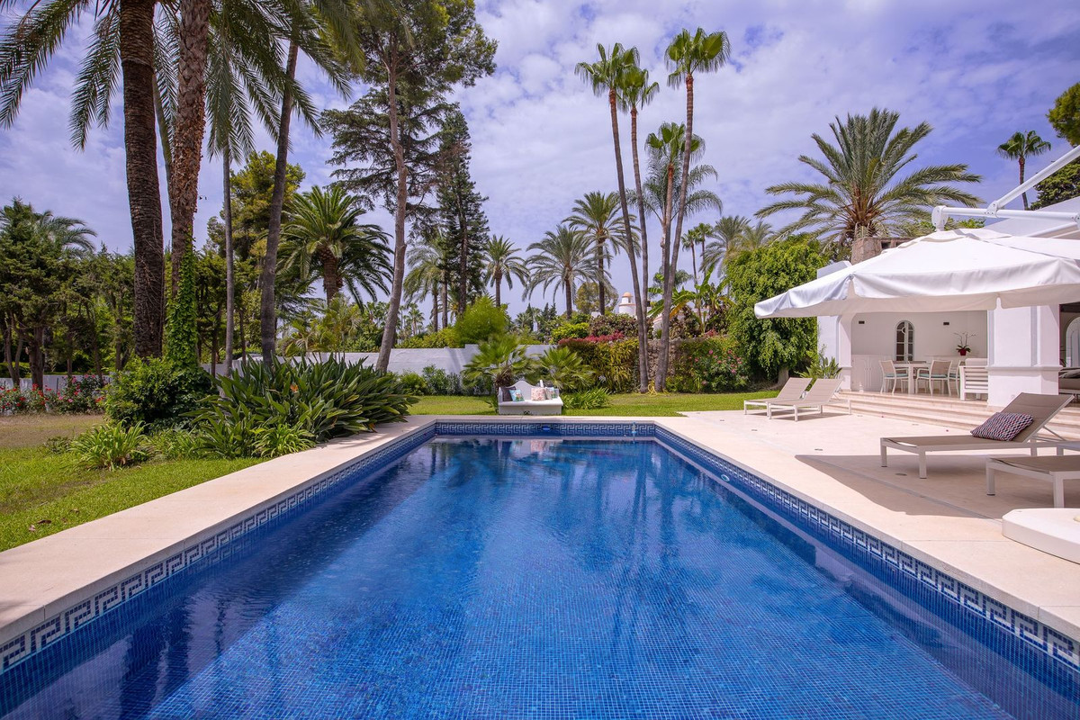 Encantador chalet con parcela de 3.000 m2, enclavado en la tranquila zona de El Pilar _ El ParaísoLa propiedad destaca por su excepcional parcela de 3.000 m2 con exuberante y madura vegetación y su gran piscina.La villa contemporánea cuenta con una cómoda distribución en una sola planta, combinando las zonas interiores y exteriores en un ambiente armonioso.El hall de entrada conduce al salón y al comedor, que se funden a la perfección con las amplias terrazas con vistas a la piscina. Una cocina abierta y totalmente equipada forma parte de la sala de estar. La propiedad cuenta con tres amplios dormitorios, todos ellos con baño en suite. Uno de ellos es completamente independiente, albergando también una pequeña cocina, ideal para un apartamento de invitados. La zona de El Pilar y El Paraíso goza de una ubicación privilegiada, a medio camino entre Marbella y Estepona, a las que se puede llegar en sólo 10 minutos en coche. Como barrio familiar, está cerca de colegios internacionales, siendo el American School el último en llegar a la zona, así como de numerosos centros deportivos, restaurantes y supermercados y de uno de los mejores campos de golf de la Costa del Sol, El Paraíso Golf.No pierda la oportunidad de ponerse en contacto con nosotros y solicitar una visita, nuestros especialistas internacionales hablan más de 10 idiomas y estarán encantados de atenderle.