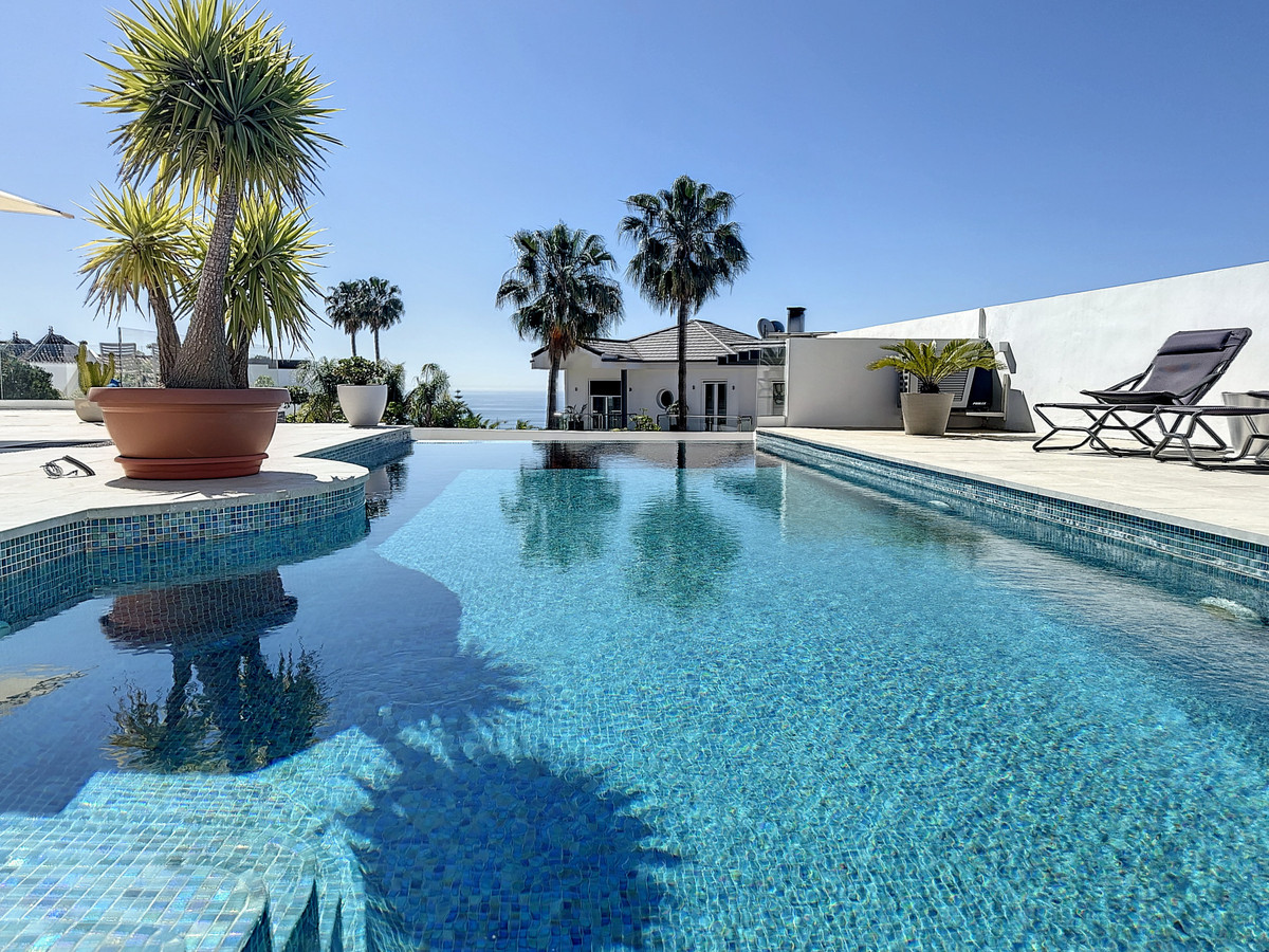 Esta villa 2 en 1 le da el efecto wow tan pronto como entras. Un 340m2, bellamente decoradas escandinavo y atención al detalle en toda la propiedad.La villa consta de dos unidades separadas, con la unidad principal que contiene tres plantas sótano, planta baja y primer piso, y la unidad secundaria situada en la planta baja. La unidad secundaria está cerrada por una puerta pero sin entrada independiente. Este piso tiene un salón amplio y sobre todo luminoso con su propia cocina integrada totalmente equipada. El salón tiene una lujosa chimenea eléctrica . Hay grandes ventanales y puertas balconeras con vistas y acceso a la piscina y tambien vistas al mar desde aqui. Al final del pasillo encontramos un lujoso vestidor y un amplio dormitorio.La residencia principal cuenta con cuatro amplios dormitorios, dos salas de estar,tres baños de lujo, una cocina abierta equipada, una bodega con encanto ygaraje para dos vehículos. En el exterior, encontramos una gran piscina infinita con una espaciosa terraza donde disfrutar del sol español. Además de estar bellamente decorada y equipada con todas las comodidades de lujo, la casa está muy bien situada. Está a sólo 10 minutos a pie de la playa, el puerto de Estepona con sus tiendas y restaurantes está a sólo 5 minutos en coche y el casco antiguo de Estepona también está a poca distancia, si quieres ir a disfrutar de sus hermosas calles y bares, Sería una perfecta casa de vacaciones o permanente para alguien que ama la paz y la tranquilidad, pero le gusta tenertodocerca.
