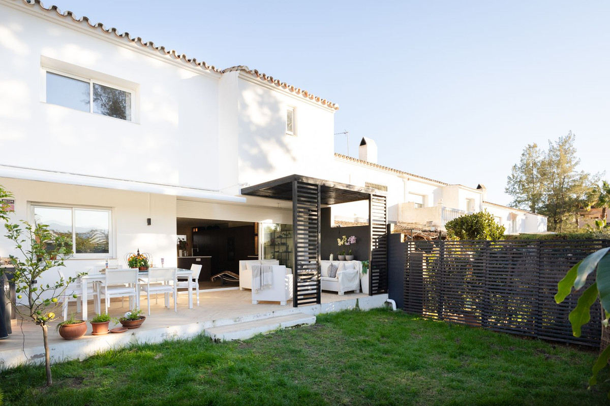 Esta elegante casa adosada, ubicada en Estepona Este, ofrece un estilo de vida moderno y elegante. Con una superficie construida de 170 metros cuadrados, este espacioso alojamiento ofrece 3 dormitorios, todos en suite. En la planta de entrada hay un espacio abierto entre la moderna cocina y el salón. Una ventana en el techo llena el salón de luz natural. También hay un aseo para invitados situado en el pasillo entre la entrada y el garaje.Esta casa adosada también tiene una preciosa azotea, donde podrá disfrutar del sol con fantásticas vistas de los alrededores. También un jardín privado que ofrece una cocina al aire libre y vistas a la naturaleza. También apreciará el acceso a un garaje, que brinda comodidad y seguridad para su automóvil.Hay un estudio independiente de la casa adosada, donde hay un dormitorio, un baño y una cocina independiente. Toda la casa fue reformada hace dos años y medio, cuando se cambió toda la electricidad y tuberías de la casa.Estepona Este es conocida por su zona tranquila y agradable con proximidad a playas, restaurantes y tiendas. Con un corto paseo también podrá llegar a una gran variedad de comodidades y servicios.En resumen, esta moderna casa adosada con azotea ofrece un estilo de vida cómodo y elegante. En la urbanización hay piscina comunitaria, pista de tenis y pista de pádel para todos, también hay amplias zonas verdes. Con proximidad a todo lo que necesita y una asociación de viviendas bien administrada, esta es una excelente opción para quienes buscan el alojamiento perfecto en Estepona Este.