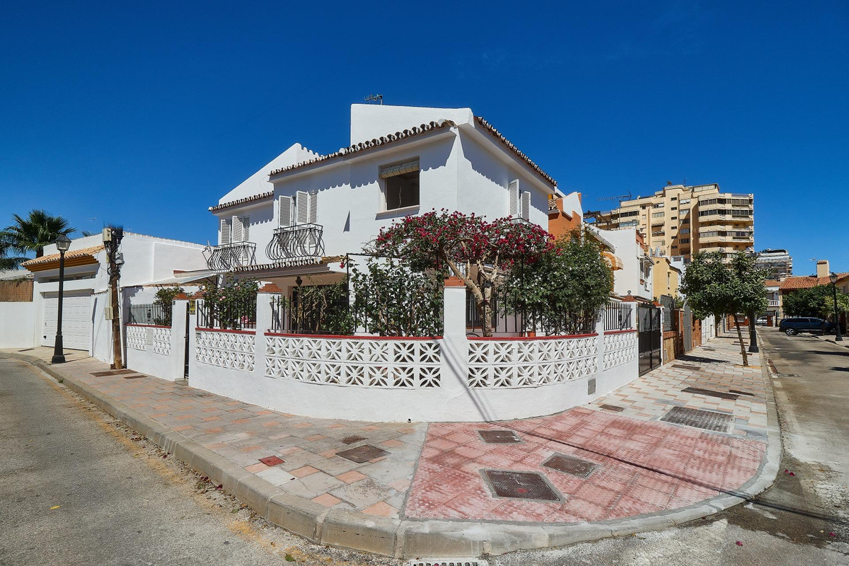 Encantador chalet en esquina localizado en la codiciada y tranquila urbanización Pueblo López, conocida por por sus pintorescas casas de estilo andaluz y por estar a tiro de piedra de la gran oferta de servicios, ocio, playas y transporte de la que presume la bella ciudad de Fuengirola.. . La vivienda se distribuye en dos plantas en la baja encontramos amplio salón comedor con chimenea que da paso a otra sala auxiliar multiusos o salita de televisión que distribuye a un baño con ducha, cocina equipada y escalera hacia planta superior.. . Desde la cocina amueblada y equipada accedemos a un pequeño patio_lavadero que incluye una pila para lavar, y un práctico trastero cerrado con toma de agua y desague para lavadora.. . La planta superior la conforman 3 dormitorios dobles, todos con armarios empotrados y con balcón, por lo que son dormitorios muy muy luminosos ... así como un baño dotado de bañera y bidé.. . La zona exterior es muy agradable, con espacio para una gran mesa para comer, hacer barbacoas, plantas, y lo que uno desee.... . El aparcamiento, tan difícil en el centro de Fuengirola, queda resuelto ya que la casa dispone de espacio para aparcar un vehículo.. . En resumidas cuentas, una amplia, luminosa y encantadora casa con aparcamiento localizada en una de las zonas residenciales más codiciadas de Fuengirola. Si usted es un enamorado de esta bella ciudad y busca vivienda de estas características, no deje pasar esta rara oportunidad. Recomendamos una visita.. . . .