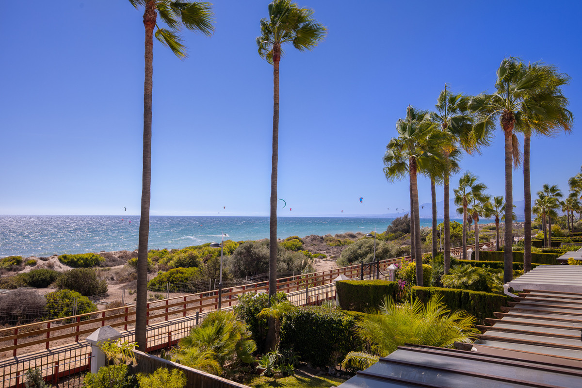 Prepárate para ser cautivado por esta extraordinaria casa adosada frente a la playa que ofrece impresionantes vistas que se extienden sobre las dunas al mar espumoso. El olor de la brisa de agua salada llena el aire, creando una experiencia sensorial que mejora su conexión con el entorno costero. Mantenga sus ojos pelados para el avistamiento ocasional de delfines juguetonos mientras nadan más allá de su casa.Esta extraordinaria propiedad no sólo cuenta con un asiento de primera mano a la fascinante Playa de la Adelfa, sino que también ofrece un acceso conveniente a la casi completa Senda Litoral, una fabulosa ruta costera ideal para paseos ociosos o paseos en bicicleta.Situado dentro de una urbanización segura y tranquila, esta propiedad se beneficia de seguridad las 24 horas y mantenidos jardines maduros. La piscina comunitaria protegida salvavidas ofrece un oasis sereno para la relajación.Esta casa adosada muy espaciosa y luminosa abarca cuatro niveles, incluyendo un sótano meticulosomente renovado completo con respiraderos de aire fresco. Aquí encontrará un acogedor dormitorio doble con baño privado con ducha, un versátil lavadero_pantalla y un trastero inferior al piso. Un garaje de entrada de código equipado con un gimnasio, que también puede acomodar hasta cuatro coches con la eliminación del equipo de gimnasio.La planta baja abre a un amplio salón elegante adornado con puertas correderas de vidrio que magnifican las vistas al mar y al jardín. Grandes baldosas de porcelana, una chimenea acogedora y un armario de vino realzan el ambiente de esta habitación. La zona de comedor adyacente también cuenta con vistas al mar, mientras que la terraza cubierta con haz de madera pasa sin problemas entre un patio encantador y una bonita zona de césped. La cocina totalmente integrada es una obra maestra de diseño moderno, con hornos dobles, una tabla de cortar incorporada, una nevera doble y una nevera_congelador que atiende a todas sus necesidades culinarias.La primera planta de esta villa se distribuye cuidadosamente, asegurando que cada rincón esté optimizado para la relajación y el disfrute. Al entrar, usted es recibido por dos habitaciones dobles que se enfrentan al mar. Imagínese despertarse al sonido de ondas suaves y la vista del sol que se levanta sobre el horizonte. Estos dormitorios también proporcionan acceso a una terraza cubierta contigua, proporcionando el lugar perfecto para tomar en las vistas, tomando el café de la mañana, o indultando en algo de tomar el sol en total privacidad. Para su comodidad, hay un baño separado en este piso, diseñado con elegantes accesorios y acabados. El dormitorio principal, también en la primera planta es una verdadera joya, con un baño en suite y una pequeña terraza con vistas a los jardines minuciosamente cuidados.A medida que continúes hasta el segundo piso, serás recibido por un dormitorio doble verdaderamente impresionante. Este amplio retiro cuenta con una terraza parcialmente cubierta, lo que le permite lucir en el sol o buscar sombra como lo desee. El despertar en esta habitación es un verdadero placer, con impresionantes vistas al mar para saludarte cada mañana. El baño en suite en esta planta está diseñado para el lujo y la comodidad, con comodidades modernas y decoración de buen gusto. Usted encontrará un montón de armarios aerodinámicos equipados en este dormitorio, asegurando que todas sus necesidades de almacenamiento se cumplan sin comprometer en estilo.Esta casa costera es un remanso de tranquilidad, que ofrece la mezcla perfecta de comodidad y elegancia. Si usted está disfrutando de la brisa del mar desde su terraza, relajarse en uno de los dormitorios hermosos, o revelándose en la belleza natural del entorno, esta propiedad promete una experiencia de vida costera sin igual.