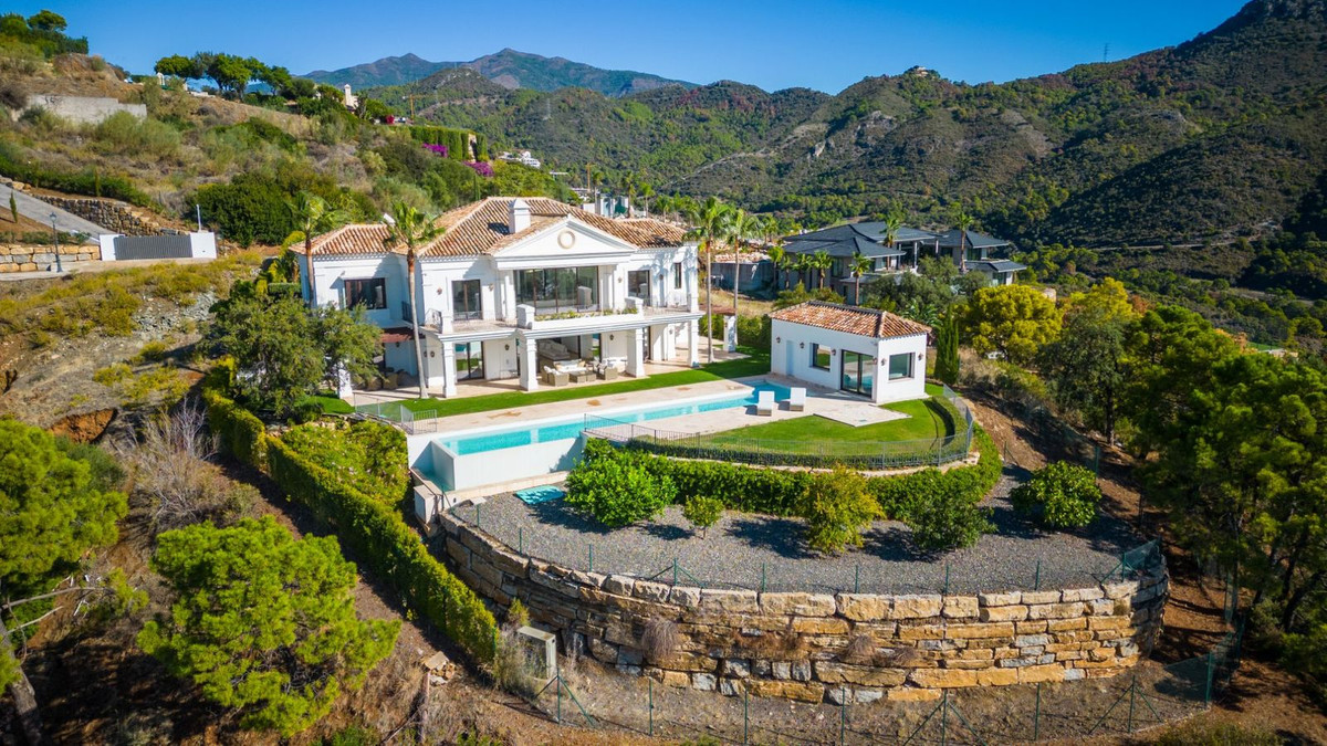 Villa _ Chalet, Benahavís, Costa del Sol.4 Dormitorios, 4 Baños, Construidos 687 m, Jardin_Terreno 3684 m.Orientación Sur.Estado Excelente.Piscina Privada.Climatización Aire Acondicionado, Suelo Radiante.Vistas Mar, Montaña.Cocina Equipada.Jardin Privado.Seguridad Seguridad 24 Horas.Aparcamiento Garaje, Más de uno.