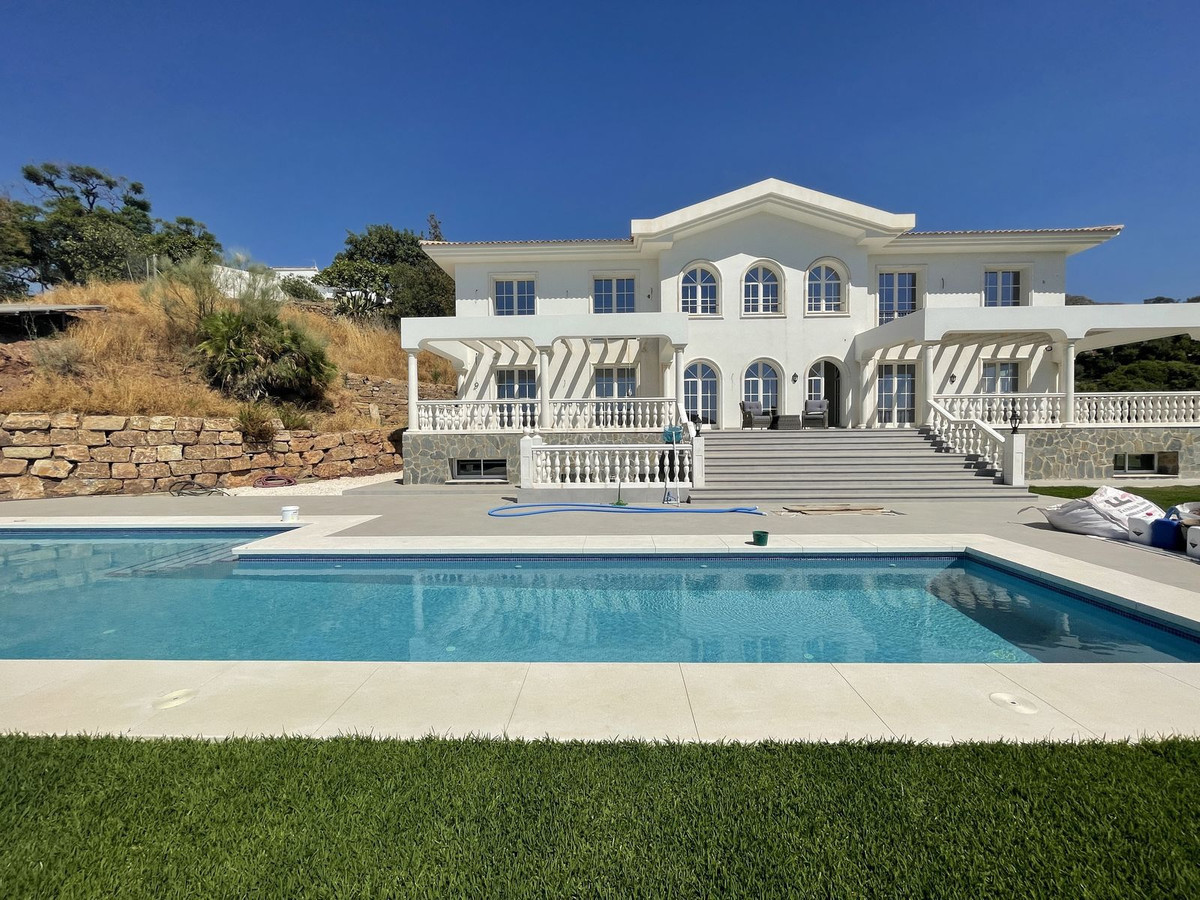 Lujosa villa de estilo clásico. Ubicado en una hermosa colina con vista al mar, a poca distancia del edificio del club social del famoso Marbella Golf Club. La casa está casi lista para entrar a vivir y está equipada, a excepción de algunos detalles de muebles italianos para baños y cocina, donde actualmente se están realizando los trabajos finales de instalación.La distribución de la casa es de la siguiente maneraSe puede entrar al territorio de la casa a través de una puerta automática, donde hay un amplio aparcamiento para varios coches . A la entrada de la casa hay un hall de entrada con un aseo de invitados, un gran salón luminoso con bonitas ventanas en arco, por el que accedemos a la cocina, totalmente equipada con electrodomésticos de alta calidad y muebles de cocina de diseño estilo provenzal. En la misma planta hay un dormitorio, una sala para el gimnasio con sauna turca y un aseo.Desde el salón hay una vista panorámica al mar y al golf. Desde el salón se puede salir al jardín ya la piscina panoramica con preciosas vistas al mar y al golf.En la primera planta hay un gran dormitorio principal con vistas panorámicas al mar y acceso a un balcón y un hermoso baño en suite.Además, hay 3 dormitorios y baños adicionales.La casa tiene aires acondicionados con suministro de aire separado, calefacción por suelos radiante en toda la casa, incluido el sótano. La planta baja es una gran sala con ventanas y luz natural, donde hay dos apartamentos separados con sus propias cocinas equipadas, dormitorios y sala de estar, con una entrada independiente desde la calle. Además, en este nivel, hay varios trasteros, un cuarto de lavado y planchado, así como una gran sala vacía que se puede equipar a su medida, por ejemplo, instalar una sala de cine, una sala de billar con barra o una bodega, etcEsta hermosa casa familiar seguramente será adecuada para vivir permanentemente con todas las comodidades al más alto nivel.