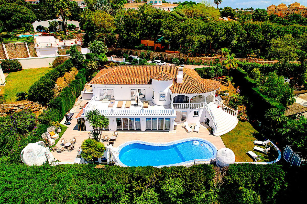 Elviria, la zona deseable de la costa de Marbella Este que ofrece tanto para tantos, que se ha convertido en un destino muy buscado. Esta villa en Elviria cumple muchos de los requisitos para los clientes más exigentes y, por ello, recomendamos encarecidamente que cualquier comprador serio la incluya en la lista corta. Situada en una bonita zona aislada a sólo 10 minutos a pie de los centros comerciales de Elviria, esta villa encarna la elegancia de la típica villa mediterránea. Hermosas proporciones de una propiedad ubicada en una parcela elevada de 1080m2 orientada al suroeste, esta villa es espaciosa y luminosa, con maravilloso espacio al aire libre y gran privacidad.Se accede a la propiedad a través de puertas automatizadas a un camino privado donde hay espacio para 2 coches. Esta área está en la parte trasera de la villa y aquí se encuentra la entrada principal puerta de entrada que conduce directamente a la casa principal y, además, la posibilidad de acceder al apartamento de invitados independiente desde el lateral de la villa.Al entrar a la casa, una luminosa sala de estar de planta abierta es el primer gran espacio habitable que esta villa tiene para ofrecer. Aquí, con muchas ventanas orientadas al suroeste, hay vistas a la piscina, al campo y al mar. Aquí, una sala de estar se beneficia de una chimenea y también accede a la terraza superior y al balcón de esta preciosa villa de Elviria, con la escalera de piedra más hermosa que desciende hasta la zona de la piscina de abajo.