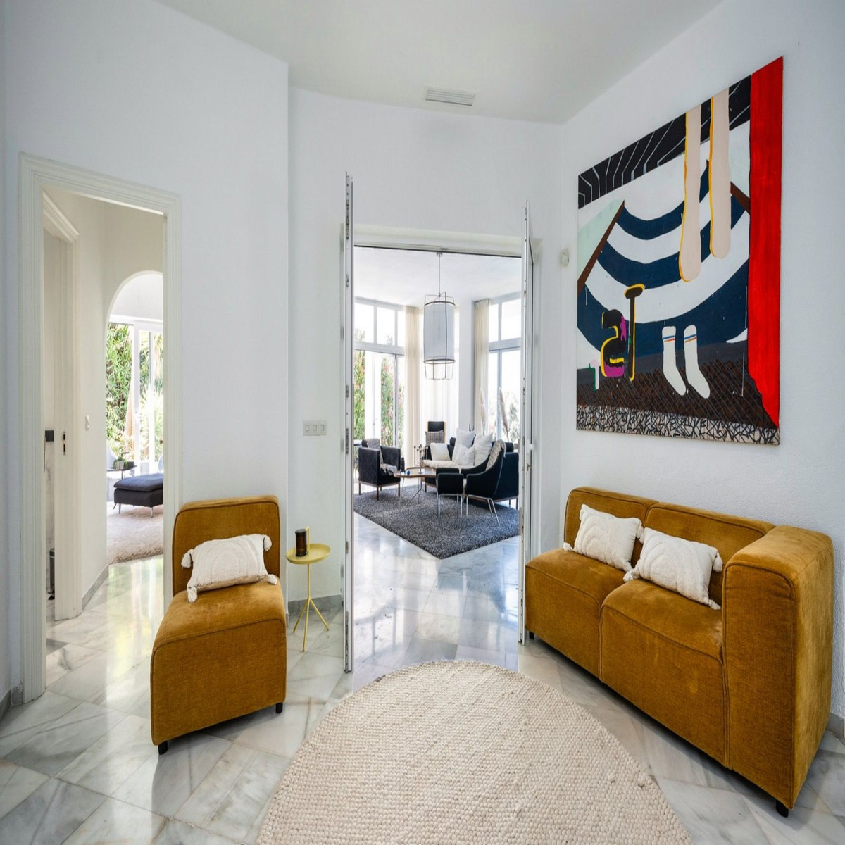 Bienvenido a Casa María, una villa exclusiva con una vista serena del campo de golf. Esta propiedad de 4 dormitorios, con un precio de 2.250.000 , ofrece una increíble oportunidad para quienes aprecian tanto el golf como la tranquilidad de la naturaleza.Situada en una espaciosa parcela de 1.884 m2 en la codiciada zona de Nueva Andalucía, esta villa con orientación suroeste fue construida en 1982 y se distribuye en dos plantas con una superficie total construida de 318 m2. La propiedad tiene 4 dormitorios, 3 baños y un aseo para invitados, diseñada para vivir cómodamente.Casa María hace alarde de un hermoso diseño de estilo escandinavo, con habitaciones amplias y espaciosas que necesitan reformas. Esto presenta una gran oportunidad para que el comprador ponga su propio sello en esta espaciosa villa, especialmente porque el propietario tiene renders para un nuevo proyecto, aunque la aprobación de la licencia aún está pendiente.Al entrar a la villa, uno se siente inmediatamente atraído por las hermosas vistas abiertas al jardín y al campo de golf. El nivel principal cuenta con una cocina abierta totalmente equipada que conduce a un comedor y una amplia sala de estar adornada con una chimenea. Este nivel también alberga uno de los dormitorios más grandes y un baño, ofreciendo fácil acceso a la soleada terraza desde todos los lados.Al descender al nivel inferior, encontrará otra sala de estar luminosa de planta abierta, junto con 3 dormitorios adicionales y 2 baños. Esta planta proporciona acceso directo al espacioso jardín y a la gran piscina privada, lo que la convierte en el lugar perfecto para relajarse y disfrutar del sol español.La zona exterior es tan impresionante como el interior, con una amplia terraza junto a la sala de estar, otra junto al dormitorio de arriba y una que da al nivel inferior. El amplio jardín rodea la propiedad y ofrece una maravillosa vista verde. Para los entusiastas de la barbacoa, existe una instalación de barbacoa . El estacionamiento es amplio, con un camino de entrada espacioso con capacidad para 4 autos y un garaje cubierto para un auto adicional.Casa María está idealmente ubicada a solo 5 minutos en auto de las tiendas y restaurantes locales, a 3 minutos en auto del Aloha College y a 10 minutos en auto de la playa. Esta ubicación perfecta combina tranquilidad y comodidad, lo que la convierte en una casa familiar ideal, un retiro de vacaciones o una buena propiedad de inversión.