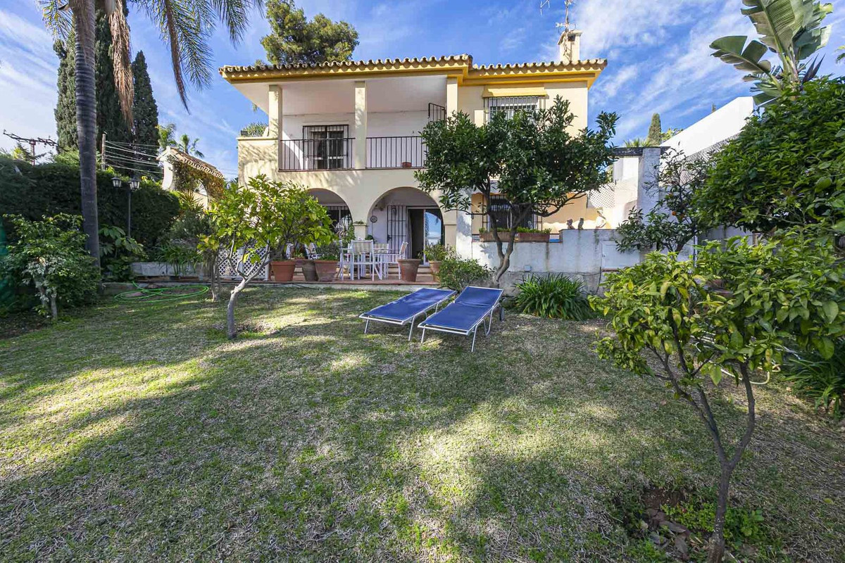 Encantadora villa situada en una tranquila calle sin salida en una posición muy céntrica de Nueva Andalucía, a poca distancia de supermercados, tiendas, restaurantes, parada de autobús y la playa.En la planta baja, la villa cuenta con una sala de estar con chimenea y un comedor separado, ambos abren a una terraza cubierta que conduce a una terraza abierta y al jardín.El jardín es maduro y hay espacio para construir una piscina si es necesario. En el lateral de la terraza abierta hay un jacuzzi.En el resto de la planta baja se encuentra la cocina, un dormitorio y un baño.En la primera planta hay cuatro dormitorios y dos baños. También hay una terraza cubierta con acceso desde dos de los dormitorios.Hermosas vistas a la montaña La Concha.La villa cuenta con aire acondicionado frío_calor en la planta baja y hay estacionamiento al aire libre.Una propiedad ideal para vivir de forma permanente o como casa de vacaciones, debido a su ubicación céntrica.Gran potencial para alquileres vacacionales.