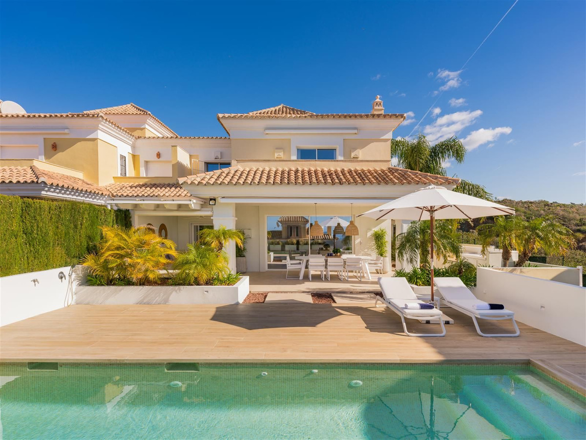 VILLA COMPLETAMENTE RENOVADA CON VISTAS AL MAR EN SANTA CLARA GOLF, MARBELLA ESTEDescubre Santa Clara Golf, una comunidad residencial cerrada que brinda seguridad y tranquilidad en una de las zonas más destacadas de Marbella Este. Con una ubicación privilegiada, disfruta de un estilo de vida relajado y saludable, con las mejores playas a un paso.Esta impresionante propiedad, distribuida en tres niveles, ha sido renovada y decorada con las más altas calidades, equipada para brindar espacio y comodidad a tu familia y amigos.Al acceder a la casa, serás recibido por un amplio salón abierto con vistas al jardín y al mar, un lugar donde el estilo y la comodidad se fusionan perfectamente. La cocina abierta, de diseño moderno, se integra armoniosamente con el ambiente. Desde el salón, accede a una amplia terraza con zonas diferenciadas un acogedor espacio chill_out, una cocina exterior con barbacoa, jardines y una piscina climatizada. Esta planta también cuenta con un aseo de cortesía y una habitación que puede usarse como oficina, sala de juegos para los niños o dormitorio.La primera planta alberga tres dormitorios y dos baños, destacando la habitación principal con baño en suite y terraza con vistas panorámicas al mar. Cada habitación está decorada con tonalidades que complementan el entorno, creando un ambiente sereno y elegante.Completa con un gimnasio equipado y una habitación de servicio con su propio baño, ubicados fuera de la casa, esta propiedad ofrece todas las comodidades necesarias para una vida de lujo y confort. La presencia de domótica y suelo radiante a lo largo de la casa garantizan una experiencia moderna y confortable.Si estás en búsqueda de una casa excepcional, con los más altos estándares de calidad, te invitamos a visitarnos y descubrir todos los detalles exclusivos que esta propiedad tiene para ofrecer.Santa Clara Golf se encuentra rodeada por uno de los campos de golf más prestigiosos de Marbella, el cual da nombre a la urbanización. Además, su ubicación privilegiada te sitúa cerca de otros campos de golf de primer nivel.