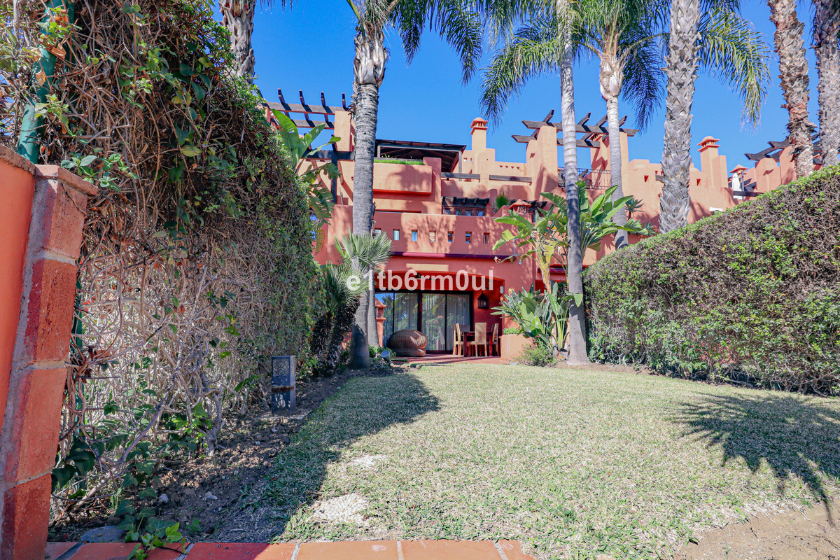 MILLA DE ORO DE MARBELLA Casa adosada con orientación sur situada en la Milla de Oro de Marbella, a poca distancia de los prestigiosos hoteles Puente Romano y Marbella Club y sus clubes de playa y a poca distancia en coche del centro de Marbella y Puerto Banús. El complejo seguro, totalmente cerrado, combina la arquitectura contemporánea y el estilo tradicional mediterráneo y cuenta con exuberantes jardines con palmeras y dos piscinas con cascada. Construida en tres niveles más azotea y con altas calidades, la luminosa casa adosada consta, en la planta baja, de un amplio salón_comedor con acceso a un gran porche y al jardín privado, cocina totalmente equipada y un aseo para invitados. En la primera planta se encuentra el dormitorio principal con baño en suite y terraza privada, dos dormitorios de invitados con sus propios balcones que comparten un baño. Amplia azotea con barbacoa de obra y espectaculares vistas a la montaña de La Concha y al campo circundante. La planta baja con luz natural es apta para uso como sala de cine, gimnasio, despacho, habitación de invitados o cuarto dormitorio estando contiguo a una habitación independiente con completas instalaciones para convertirla en cocina o baño. También hay un trastero y acceso directo a un garaje subterráneo doble. Otras características A_A frío_calor, sistemas de seguridad.