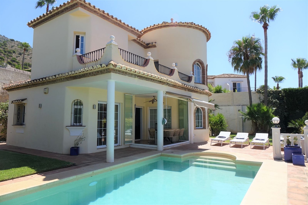 Excelente Villa orientada al sur situada en la urbanización popular y de lujo de Buena Vista, a 10 minutos en coche de Mijas Pueblo, Benalmádena Pueblo y la Costa y con fácil acceso a la autopista A7.La villa se distribuye en dos niveles. En la planta baja la entrada es en el hall de entrada que conduce a través de la sala de estar de planta abierta y cocina. El salón tiene una chimenea y puertas que dan a una terraza cubierta acristalada y la piscina y el jardín. Hay dos dormitorios en esta planta, el primero con un cuarto de baño y puertas que dan al exterior, mientras que el segundo dormitorio tiene puertas que dan al exterior. Hay un cuarto de baño familiar con ducha.También en la planta baja es un espacio de trabajo que se utiliza como una oficina, por lo que la villa una propiedad ideal para alguien que trabaja desde casa.Las escaleras conducen a la primera planta del dormitorio principal que tiene un amplio armario y un cuarto de baño con bañera de esquina y ducha.Hay una puerta de patio que conduce a un balcón privado con magníficas vistas de la costa y el mar.Esta propiedad tiene espacio exterior muy útil, incluyendo una sección de jardín con césped, piscina de buen tamaño con zona para tomar el sol, y la zona de cubierta que se utiliza actualmente para comer al aire libre y relajarse. Hay una zona de gimnasio cubierto, y la villa tiene tanto una plaza de garaje y plaza de aparcamiento.Villa _ Chalet, Mijas, Costa del Sol.3 Dormitorios, 3 Baños, Construidos 218 m, Jardin_Terreno 583 m.Orientación Sur.Estado Excelente.Piscina Privada.Climatización Aire Acondicionado, Calefacción Central., Chimenea.Vistas Mar, Montaña.Caracteristicas Armarios Empotrados, Cerca de Transporte, Terraza Privada, WiFi, Baño En_Suite.Muebles Opcionales.Cocina Equipada.Jardin Privado.Seguridad Recinto Cerrado.Aparcamiento Garaje, Privado.Servicios Públicos Electricidad, Agua Potable.Categoría Reventa.